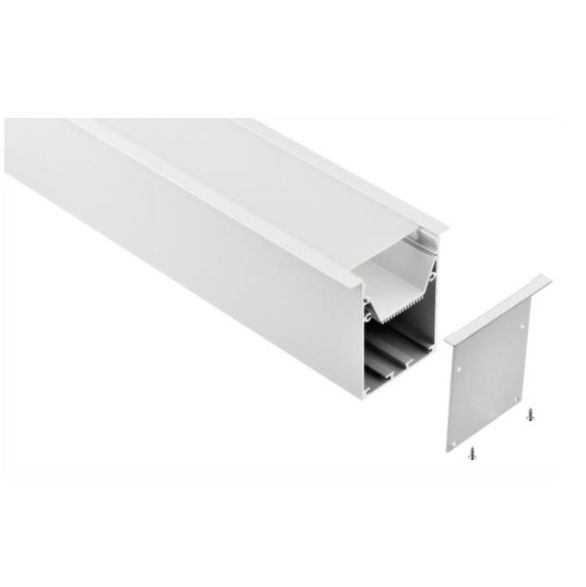 Perfil luminoso de empotrar fabricado en extrusión de aluminio de 70mm de ancho y 75mm de alto, acabado color blanco, negro, natural o gris.
